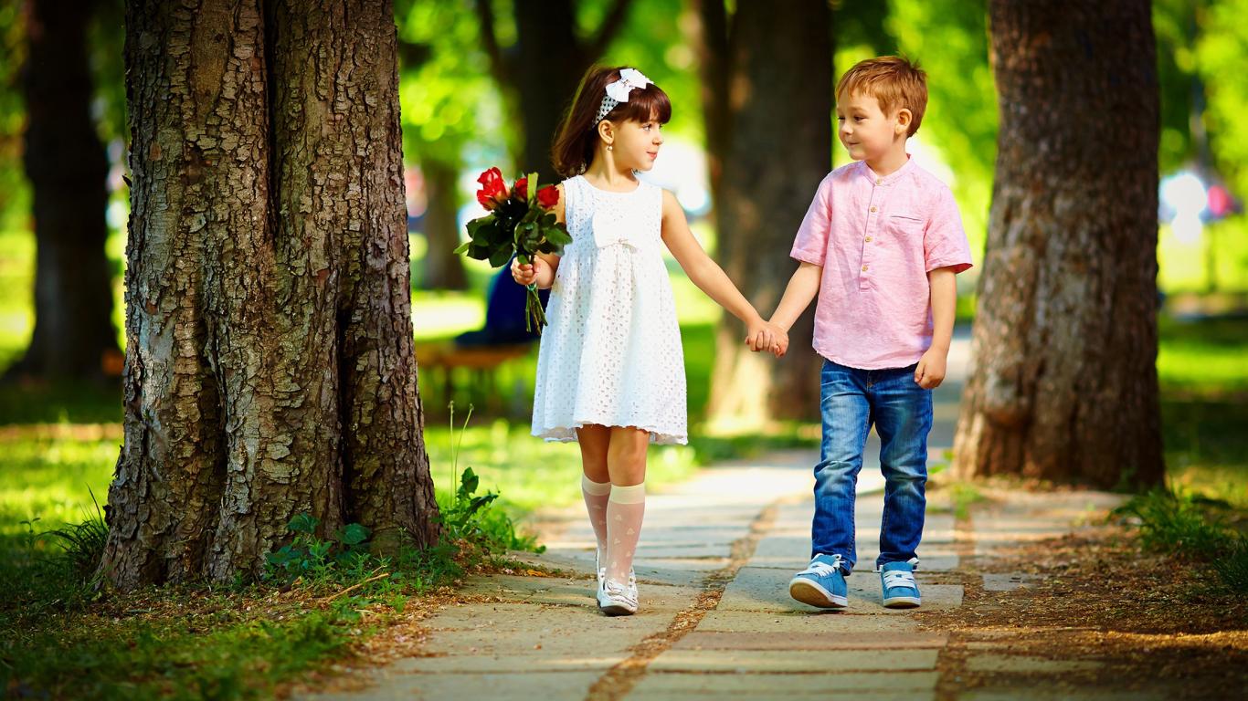 Wallpaper Boy and girl walk in the park