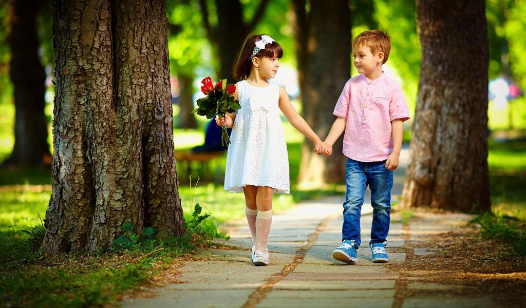 Wallpaper Boy and girl walk in the park