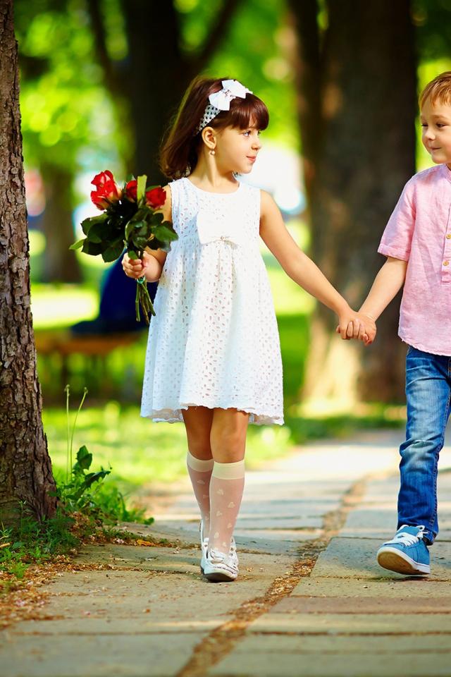 Wallpaper Boy and girl walk in the park