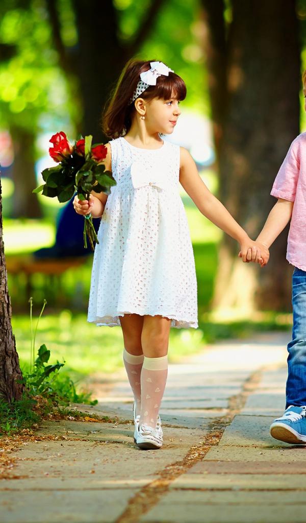 Wallpaper Boy and girl walk in the park