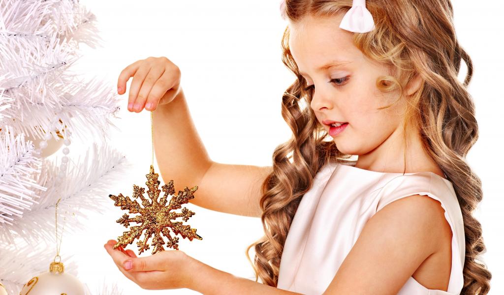 Wallpaper Little girl holds a Christmas toy snowflake in hand