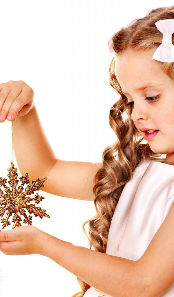 Wallpaper Little girl holds a Christmas toy snowflake in hand