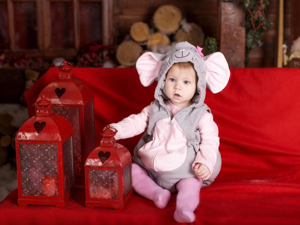Wallpaper Little boy in a mouse suit with lanterns on a sofa