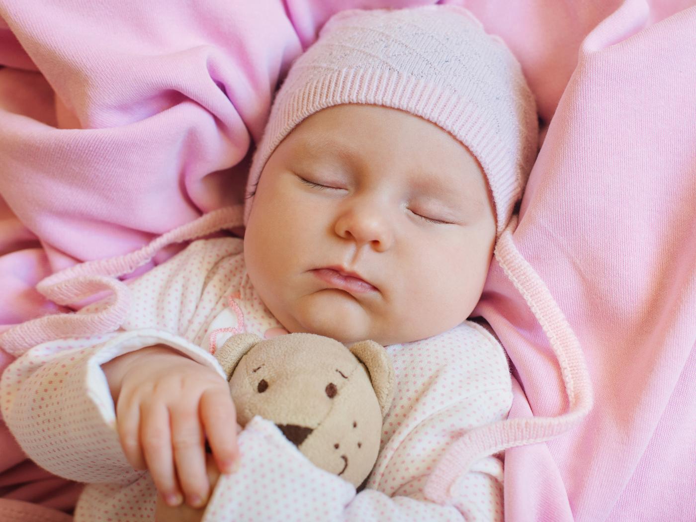 Wallpaper A baby baby sleeps with a favorite soft toy
