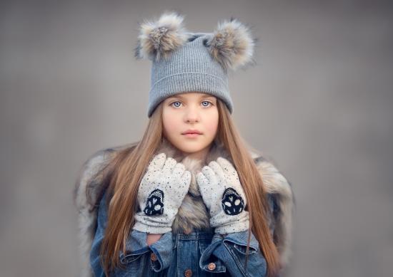 Wallpaper Beautiful blue-eyed girl in a warm hat