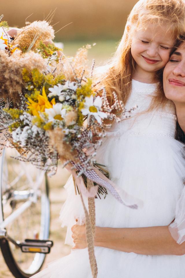 Wallpaper Little girl with mom at the bike