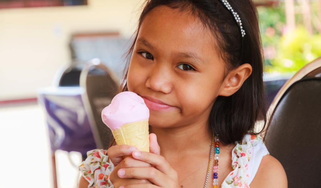 Wallpaper Little asian girl with ice cream in hand