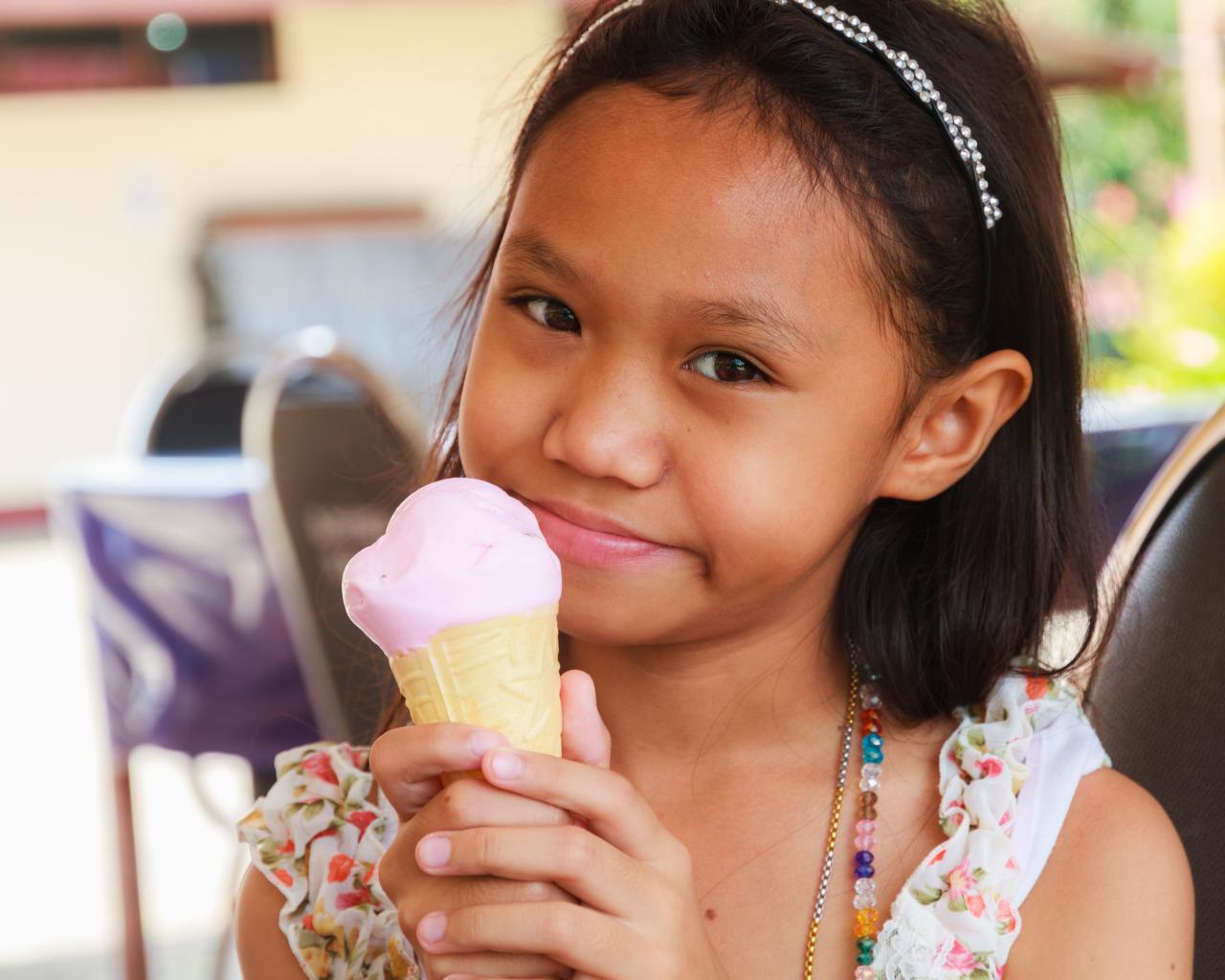 Wallpaper Little asian girl with ice cream in hand