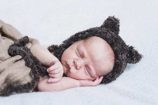 Wallpaper Little baby sleeping under a fur blanket in a knitted hat