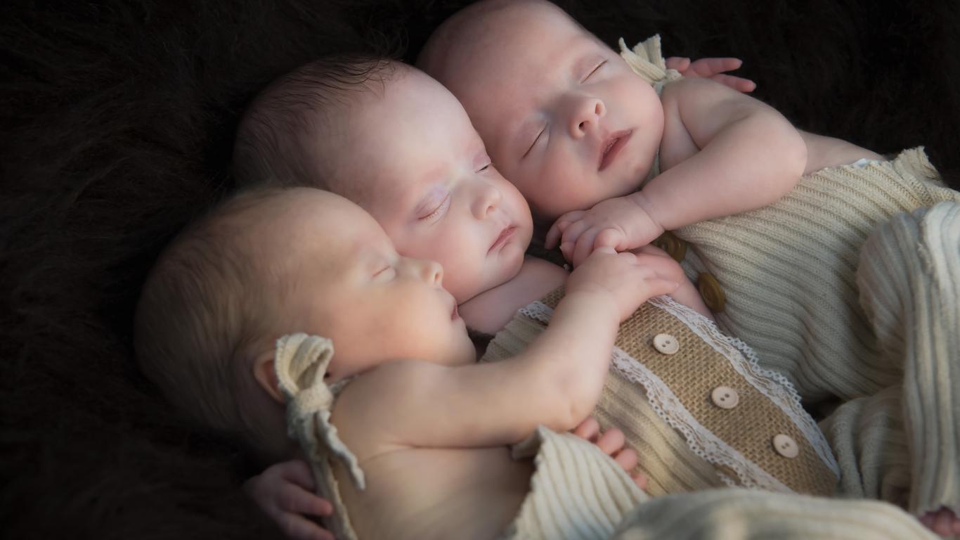 » Wallpaper Three little babies sleep hugging