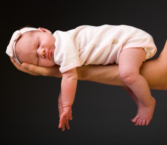 » Wallpaper Sleeping baby on dad`s hand on a gray background