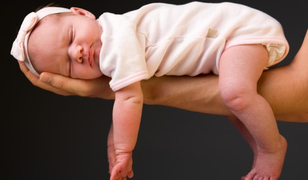 Wallpaper A small sleeping baby on a gray background