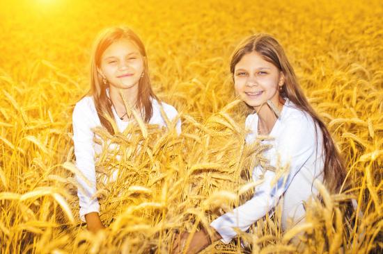 Wallpaper Two smiling girls on the field with wheat