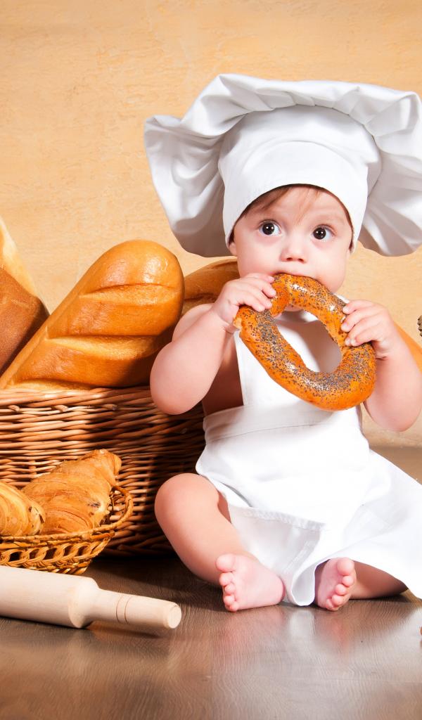 Wallpaper Little boy with baked goods on the table