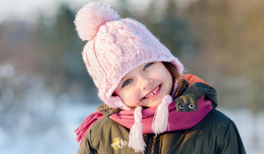 Wallpaper Smiling girl in a pink hat in winter