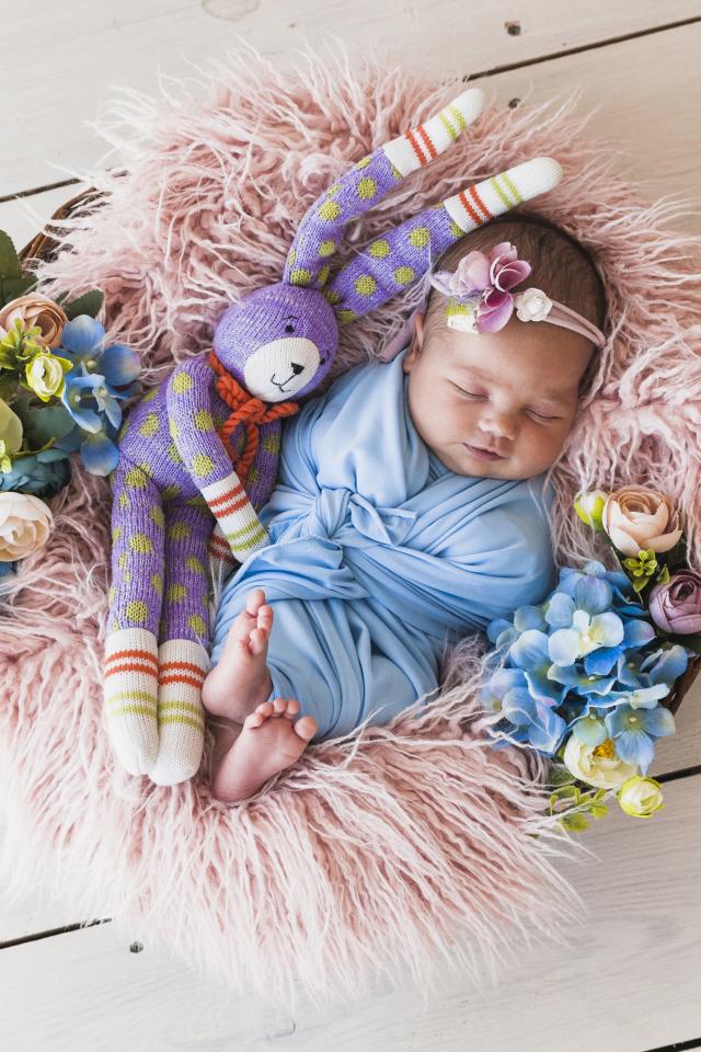 Wallpaper Sleeping baby with a toy in a basket