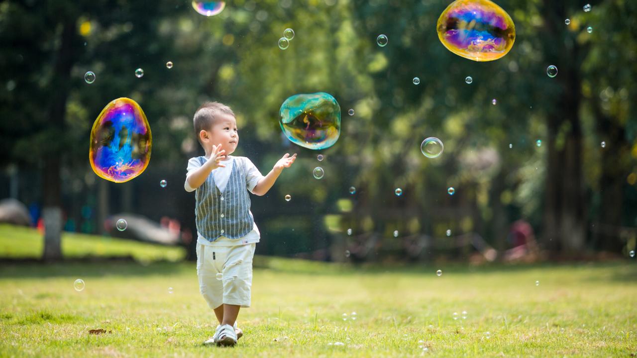 Wallpaper White Swiss Shepherd catches soap bubbles