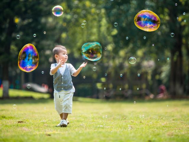 » Wallpaper Little boy catches soap bubbles