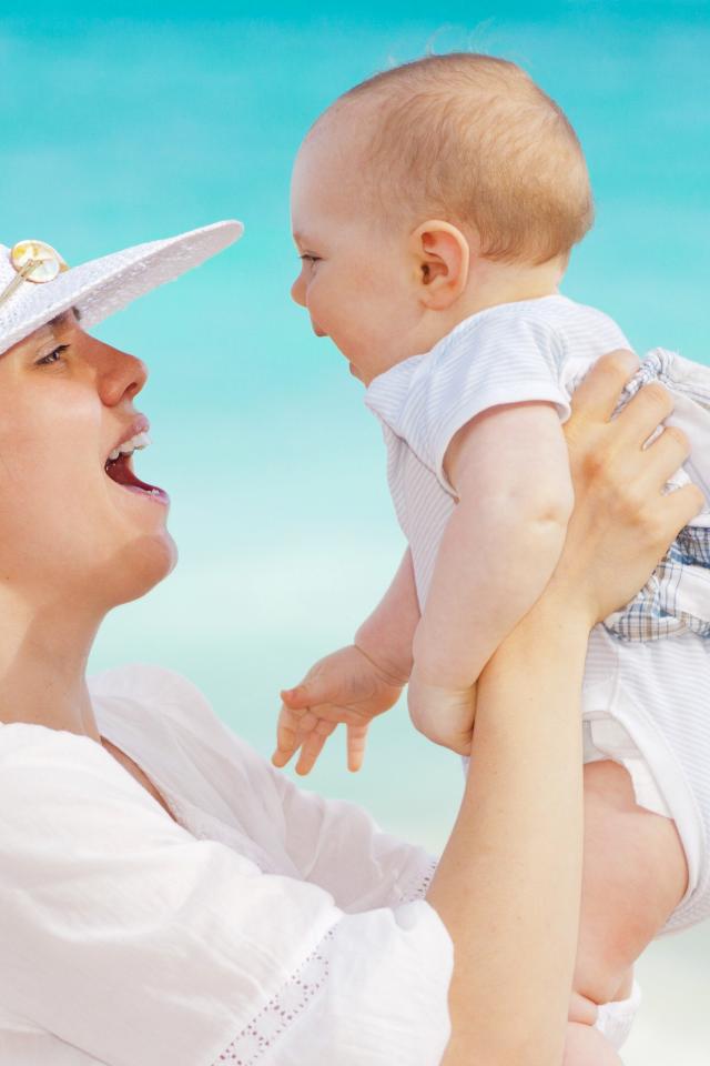 Wallpaper A small child in her mother’s arms in summer