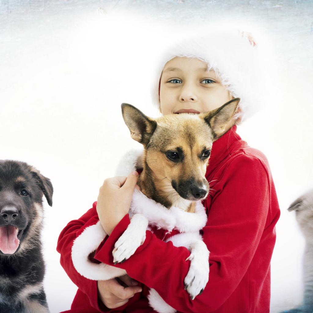 Wallpaper Blue-eyed girl with dogs and a kitten