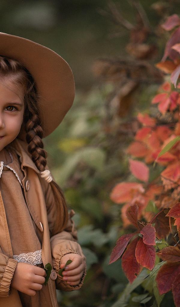 Wallpaper Beautiful girl in a hat stands by a wild grape