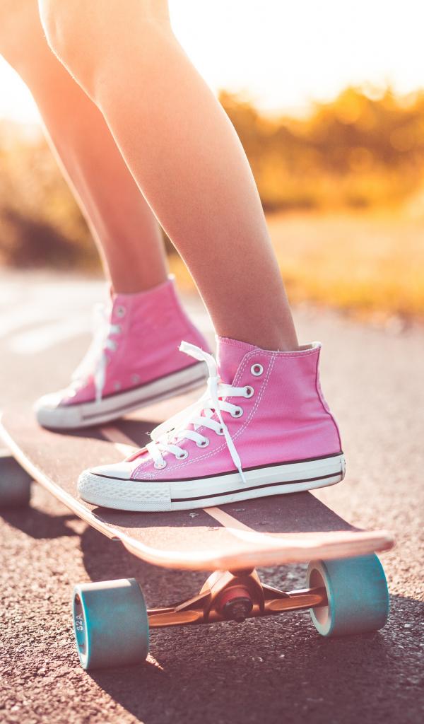 Wallpaper Girl in pink sneakers rides on a skateboard.