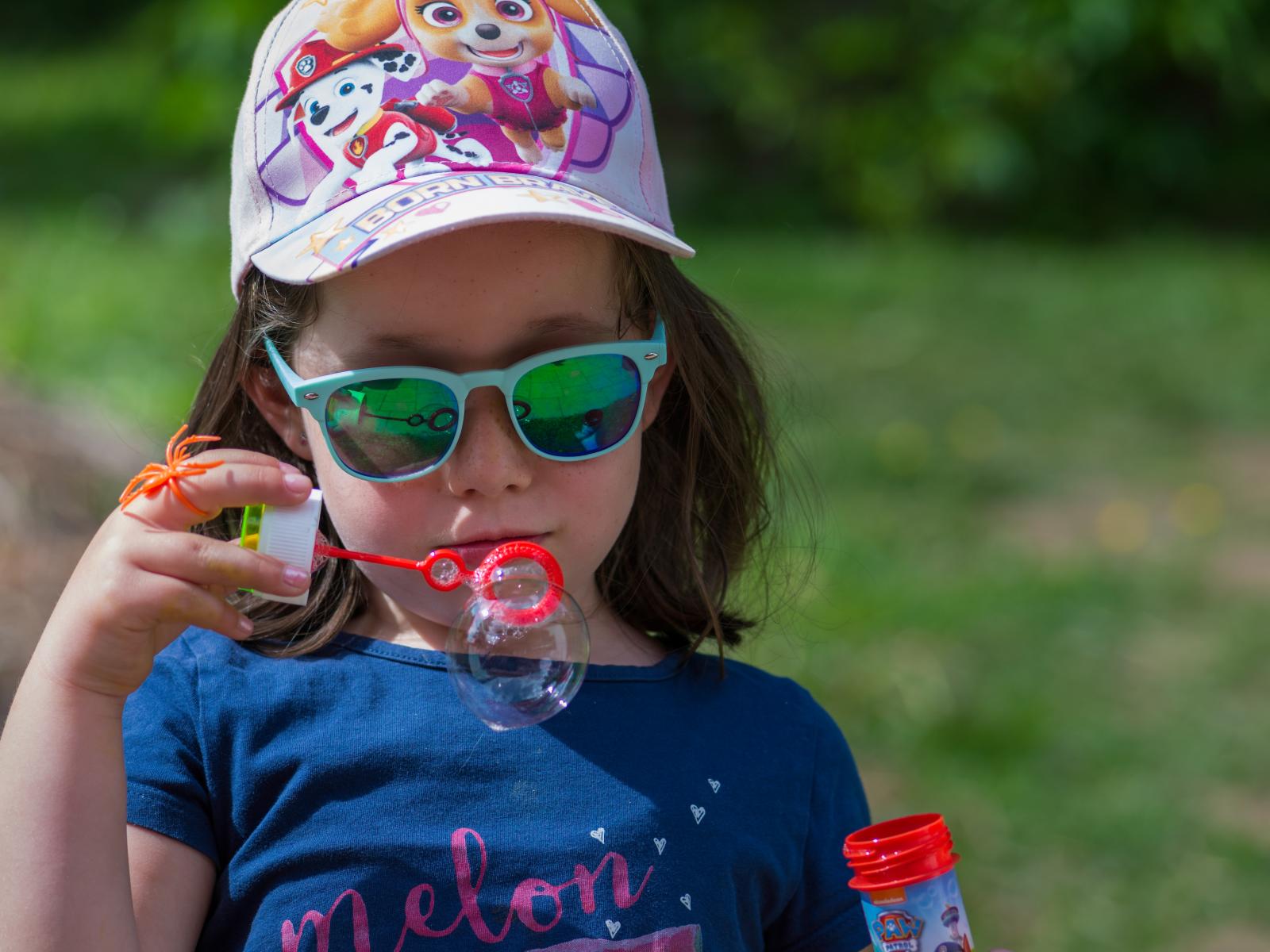 Wallpaper Little girl in glasses with soap bubbles