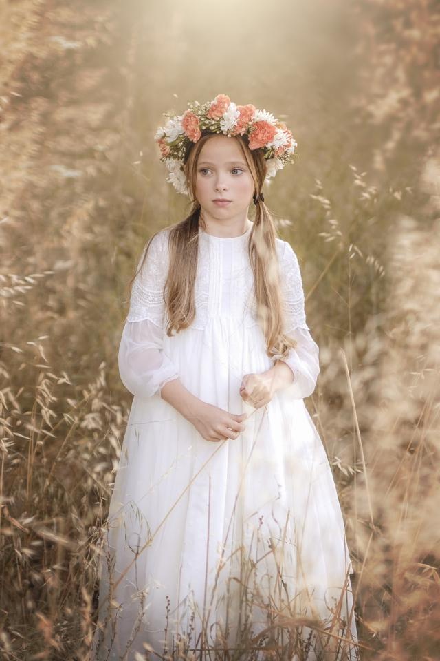 Wallpaper Little girl in a white dress with a wreath on her head