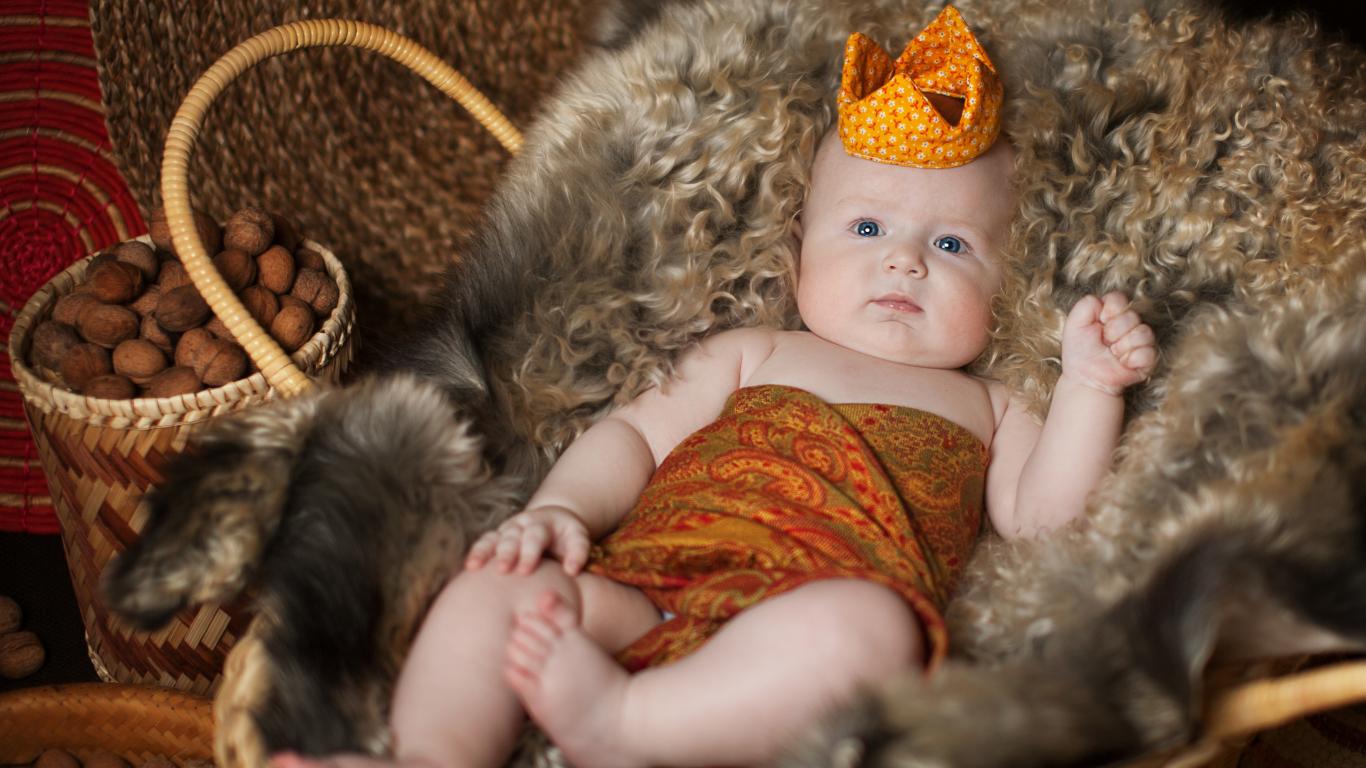 Wallpaper Little baby in a crown lies in a basket