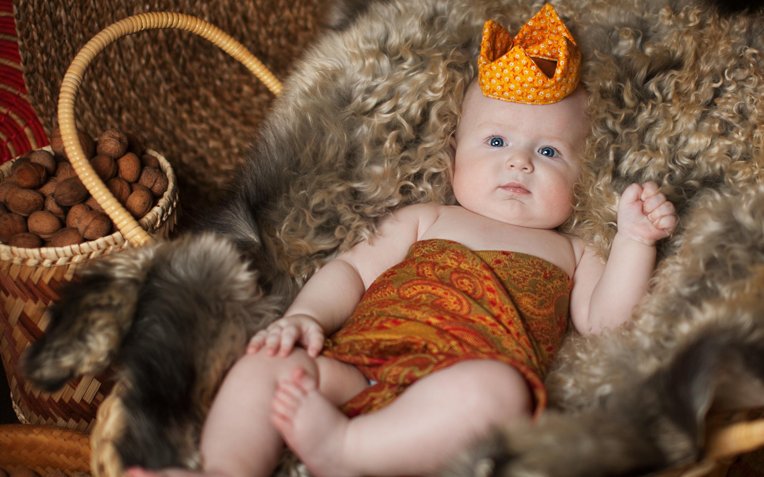 Wallpaper Little baby in a crown lies in a basket