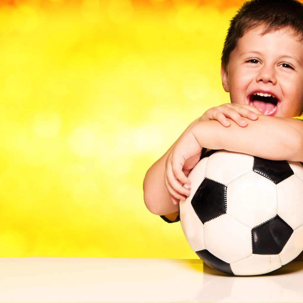 » Wallpaper Little happy boy with a soccer ball