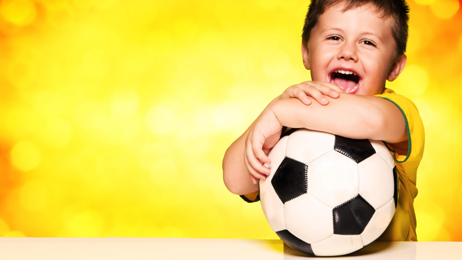 Wallpaper Little happy boy with a soccer ball