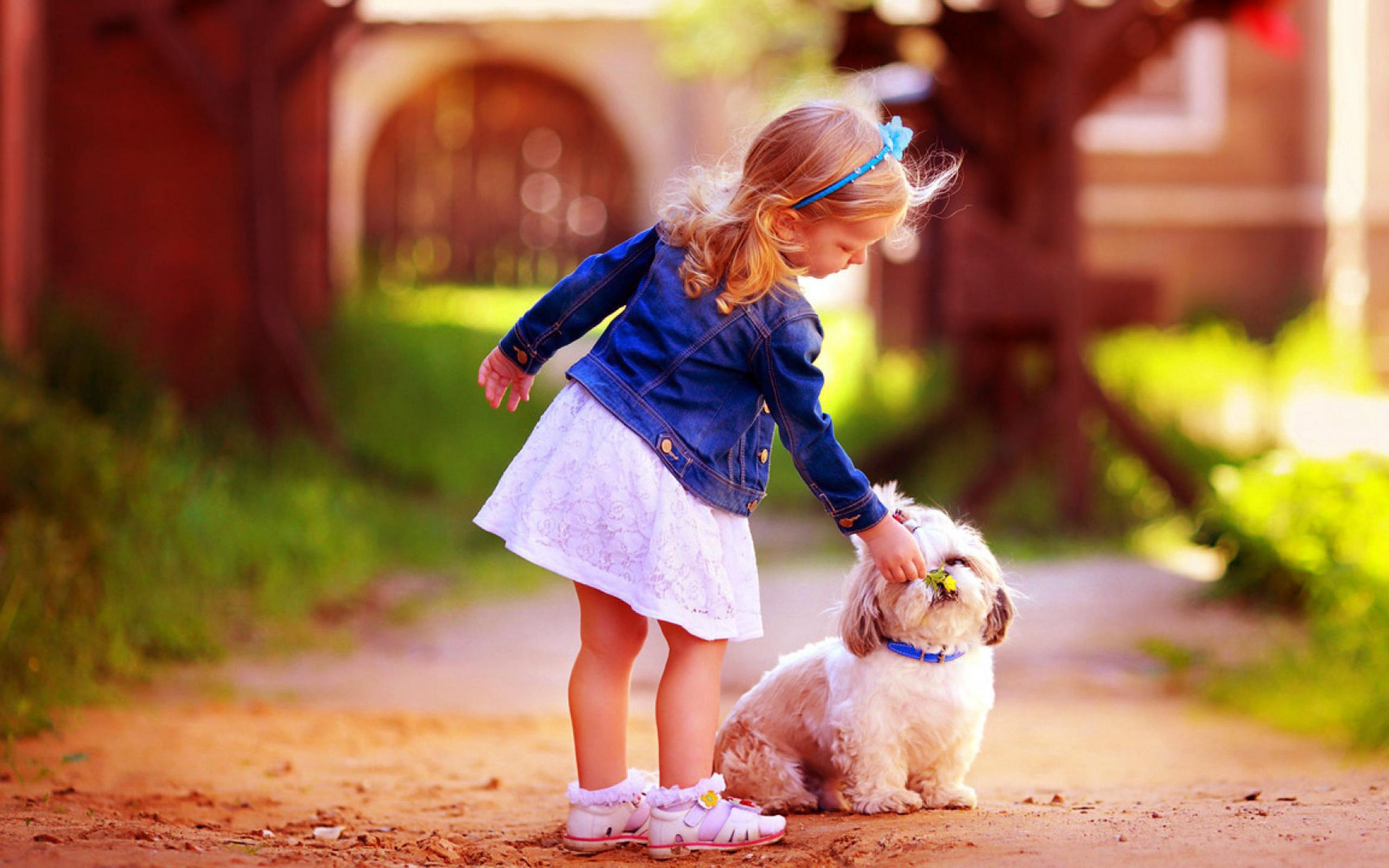 Wallpaper Little girl walking a dog