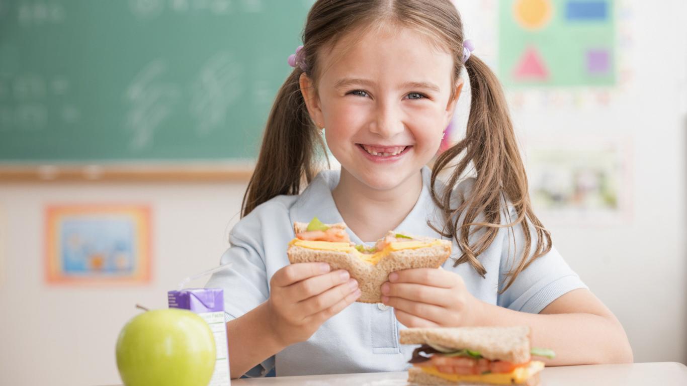 Wallpaper Smiling girl schoolgirl in the cafeteria
