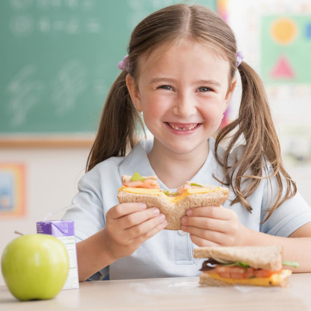 Wallpaper Smiling girl schoolgirl in the cafeteria