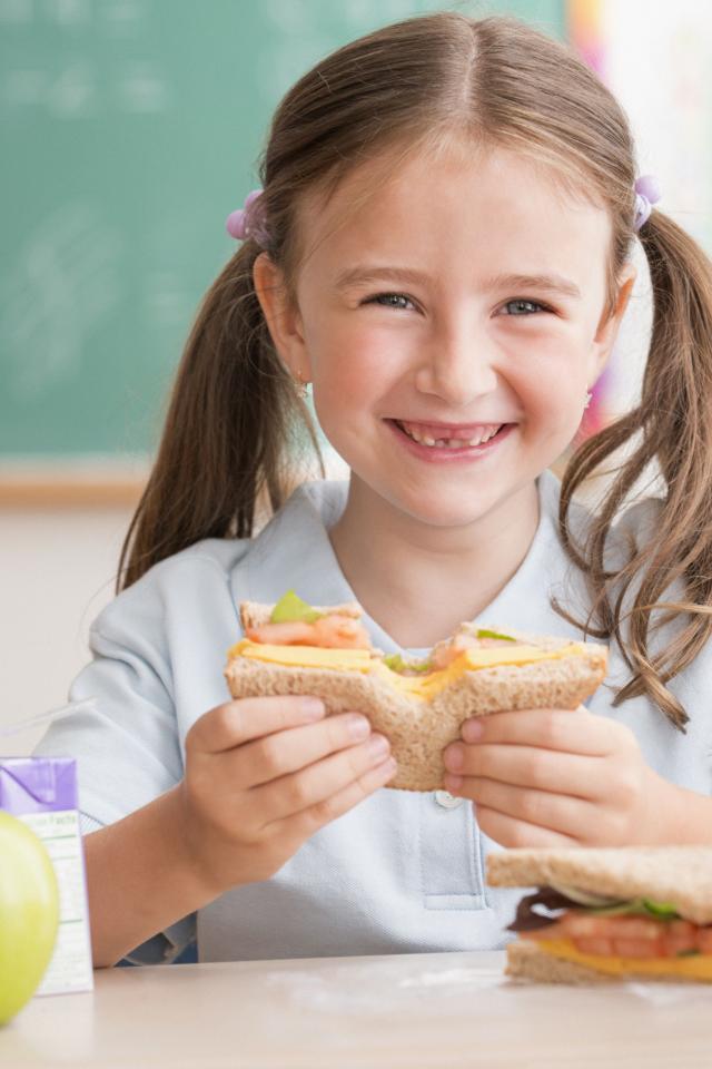 Wallpaper Smiling girl schoolgirl in the cafeteria