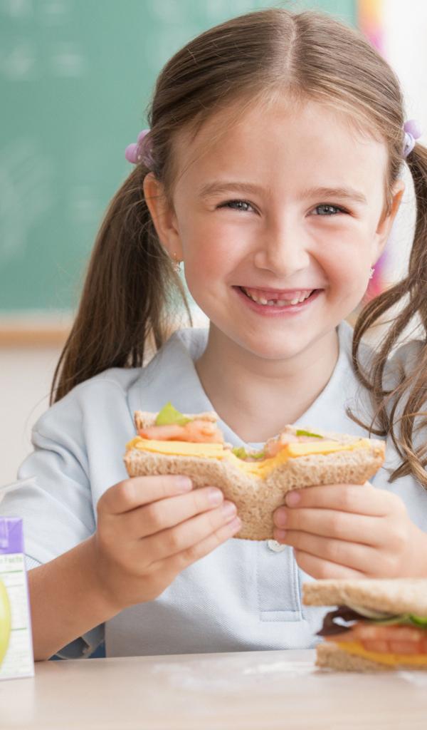 Wallpaper Smiling girl schoolgirl in the cafeteria