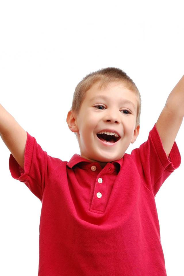 Wallpaper Happy boy in a red shirt on a white background