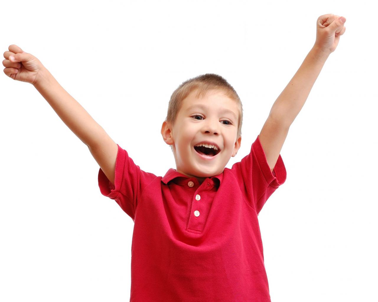 Wallpaper Happy boy in a red shirt on a white background