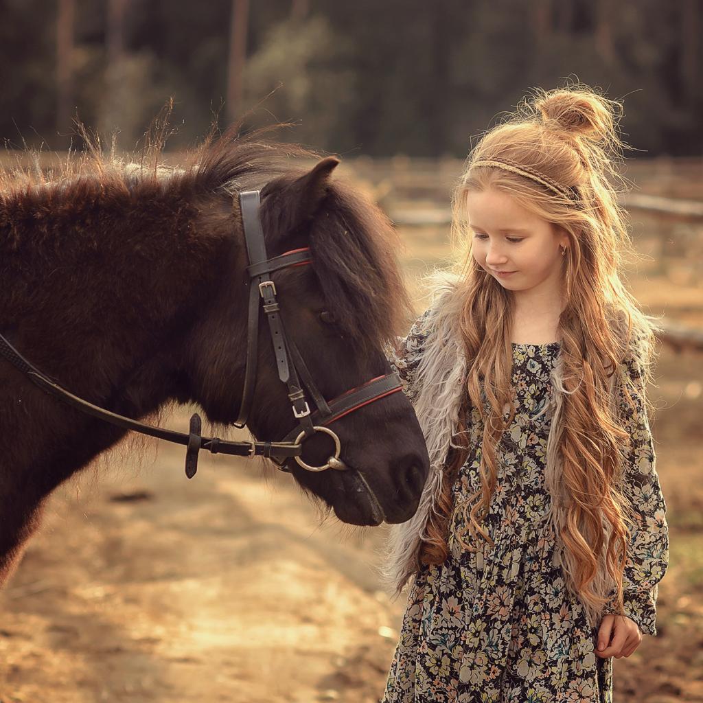 » Wallpaper Little girl with a pony on the farm