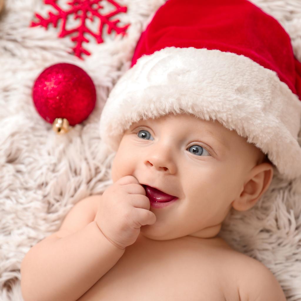 Wallpaper Blue-eyed baby in a red Santa Claus hat