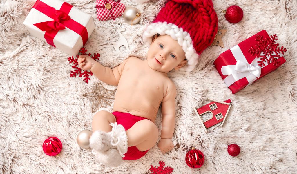 Wallpaper Smiling child dressed as Santa Claus with bag