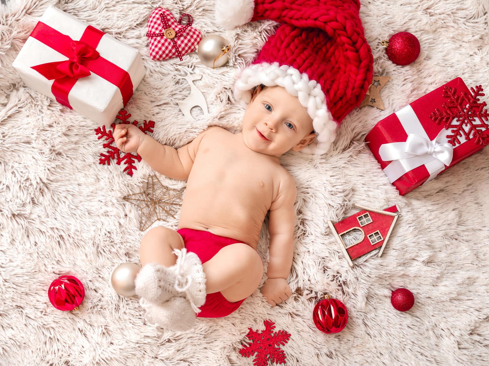 Wallpaper Smiling child dressed as Santa Claus with bag