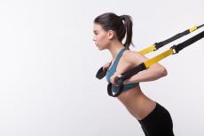 Wallpaper Little girl is engaged with dumbbells on a white background