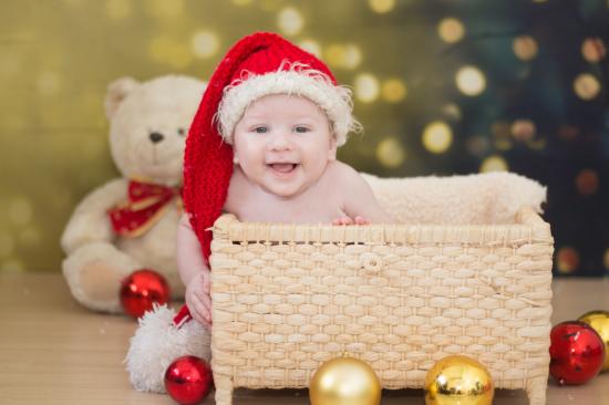» Wallpaper Smiling kid in basket for new year