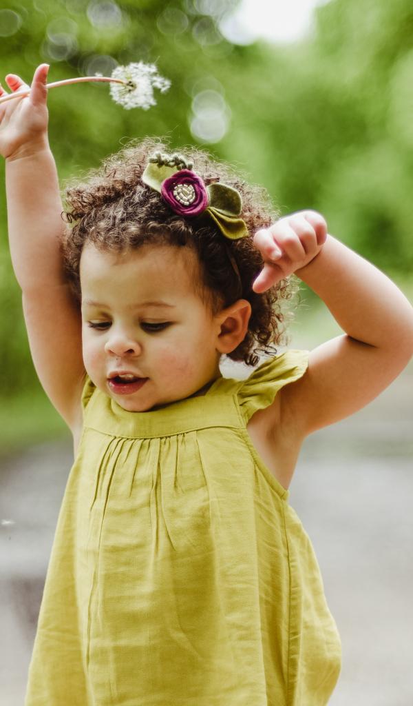 Wallpaper Little girl in a dress with a dandelion in her hand