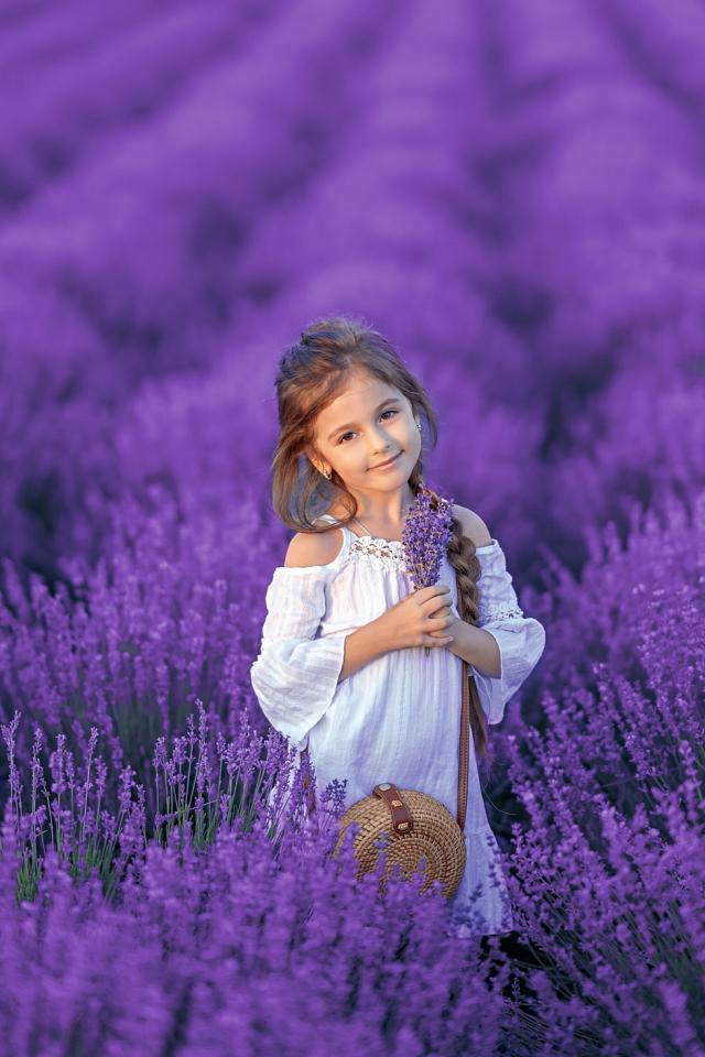 Wallpaper Beautiful little girl on lavender field