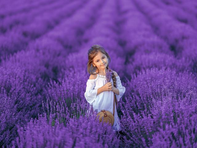 Wallpaper Beautiful little girl on lavender field