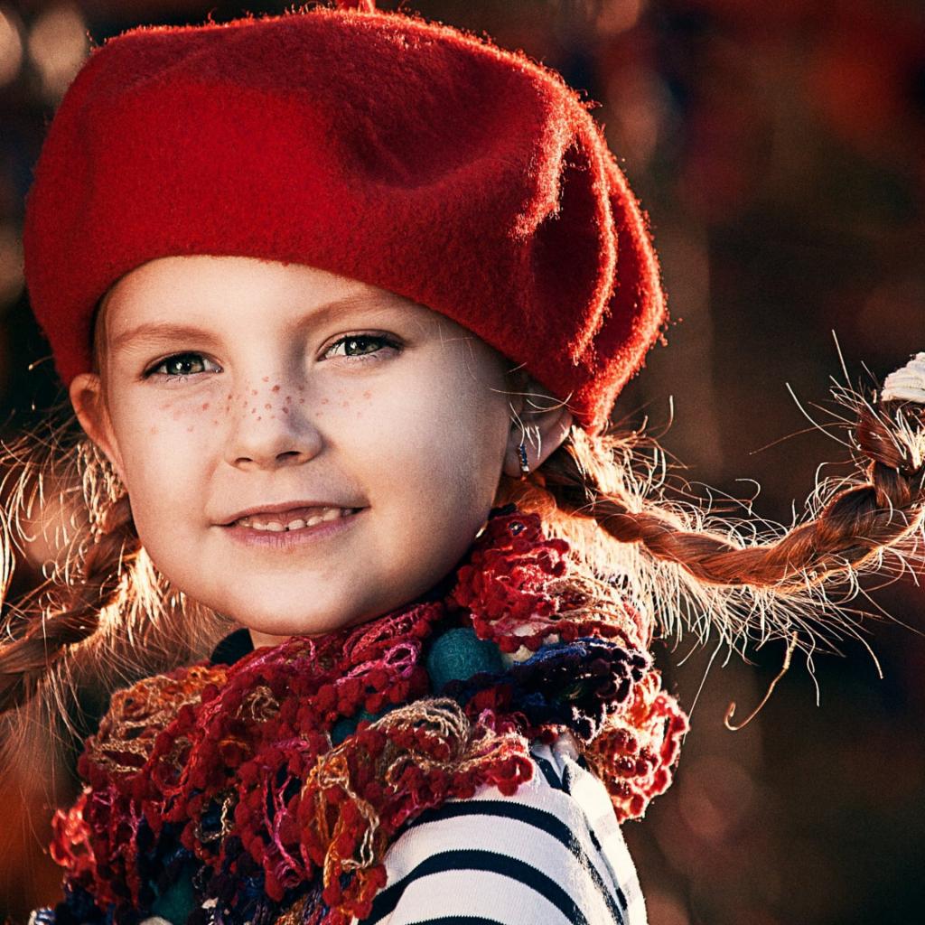Wallpaper Funny little girl with pigtails in a red beret