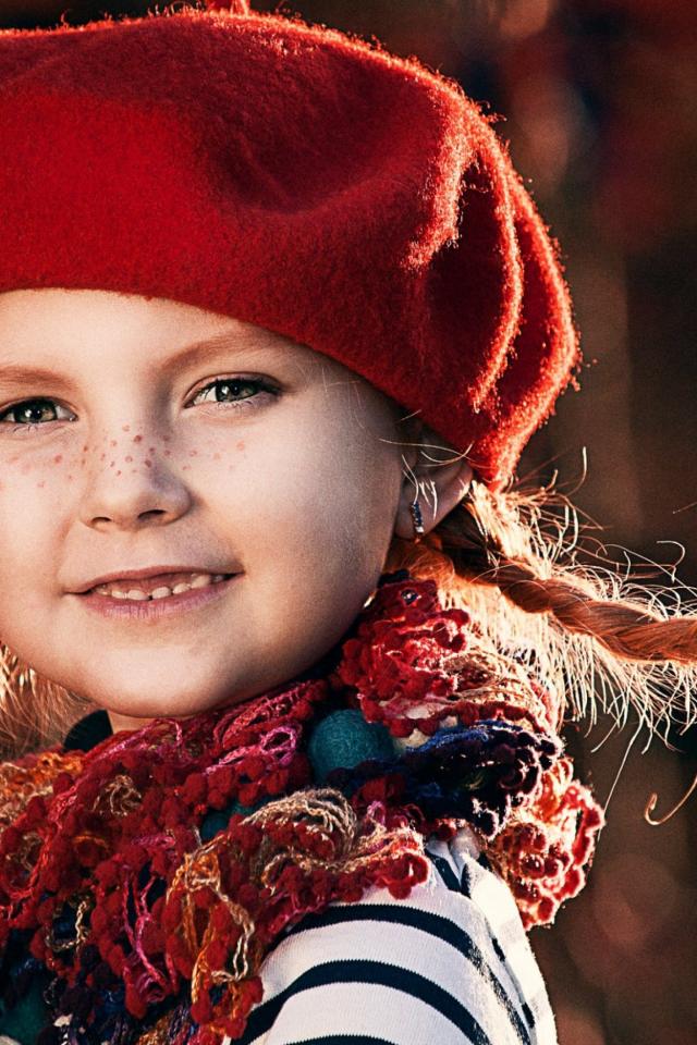 Wallpaper Funny little girl with pigtails in a red beret